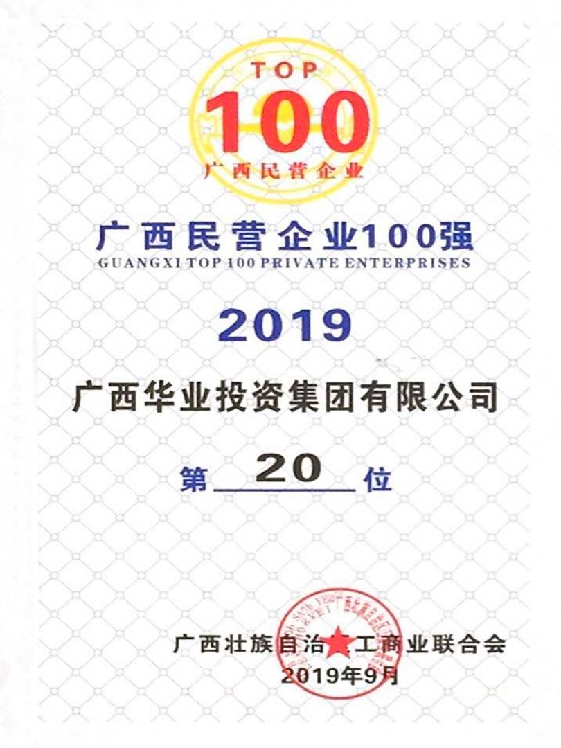 2019年廣西民營企業(yè)100強榜第20名